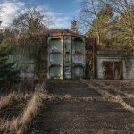 Der Bunker ist vorne und hinten mit 2 großen schweren Eisentoren versehen. Insgesamt fanden wir den Zustand erstaunlich gut, es waren kaum Beschmierungen oder grobe Zerstörungen zu finden. Zur Anlage gehören noch 2 kleinere Lagergebäude inklusive Garagen.